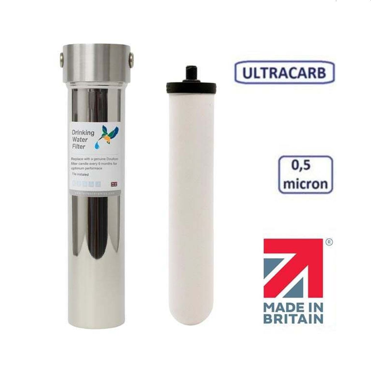 Φίλτρο Νερού Κάτω Πάγκου Inox HIS PF με Ανταλλακτικό Φίλτρο Ultracarb 0.5μm Doulton