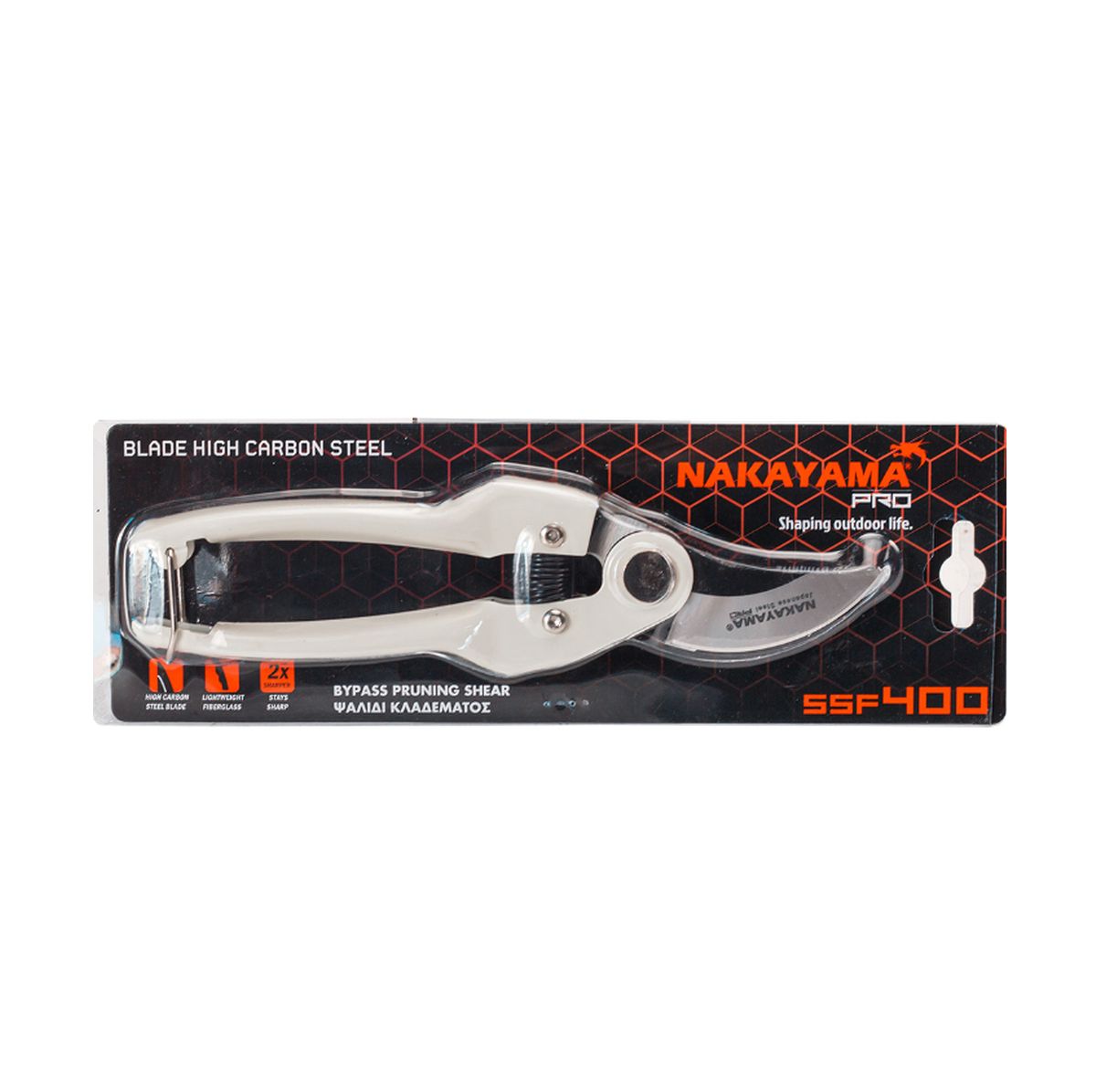 Ψαλίδι κλαδέματος χειρός της εταιρείας Nakayama. Είναι ιδανικό για διάφορες κηπουρικές εργασίες χωρίς να χρειάζεται ιδιαίτερες γνώσεις για τη λειτουργία του και μπορεί κόψει κλαδιά διαμέτρου έως και 20 χιλιοστά.