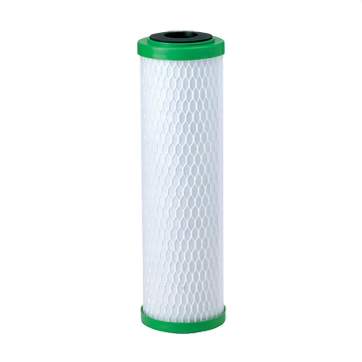 Είναι κατασκευασμένο από ενεργό άνθρακα (PAC) με ένα ειδικά σχεδιασμένο προσροφητικό μέσο και διαθέτει ενσωματωμένο περιοριστή ροής για ελεγχόμενη ροή νερού. Προστατεύεται από ένα μοναδικό διμερές προφίλτρο πολυολεφίνης, το οποίο παγιδεύει αποτελεσματικά τα ιζήματα που διαφορετικά μπορεί να φράξουν τα φυσίγγια μπλοκ άνθρακα. Αυτό το προφίλτρο παρατείνει σημαντικά τη διάρκεια ζωής των φίλτρων, εξασφαλίζοντας μακροχρόνια και σταθερή απόδοση φιλτραρίσματος.